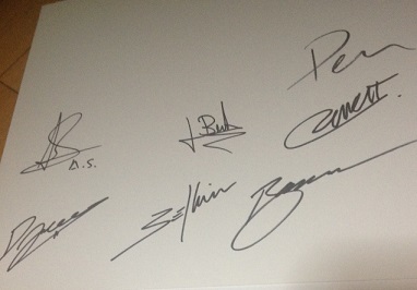 中に開発陣のサインが書かれた色紙がある